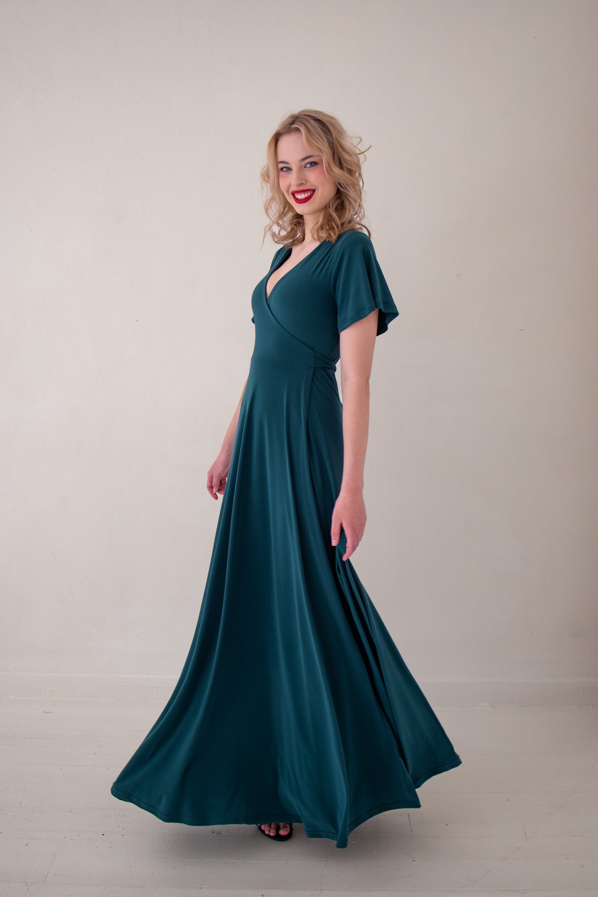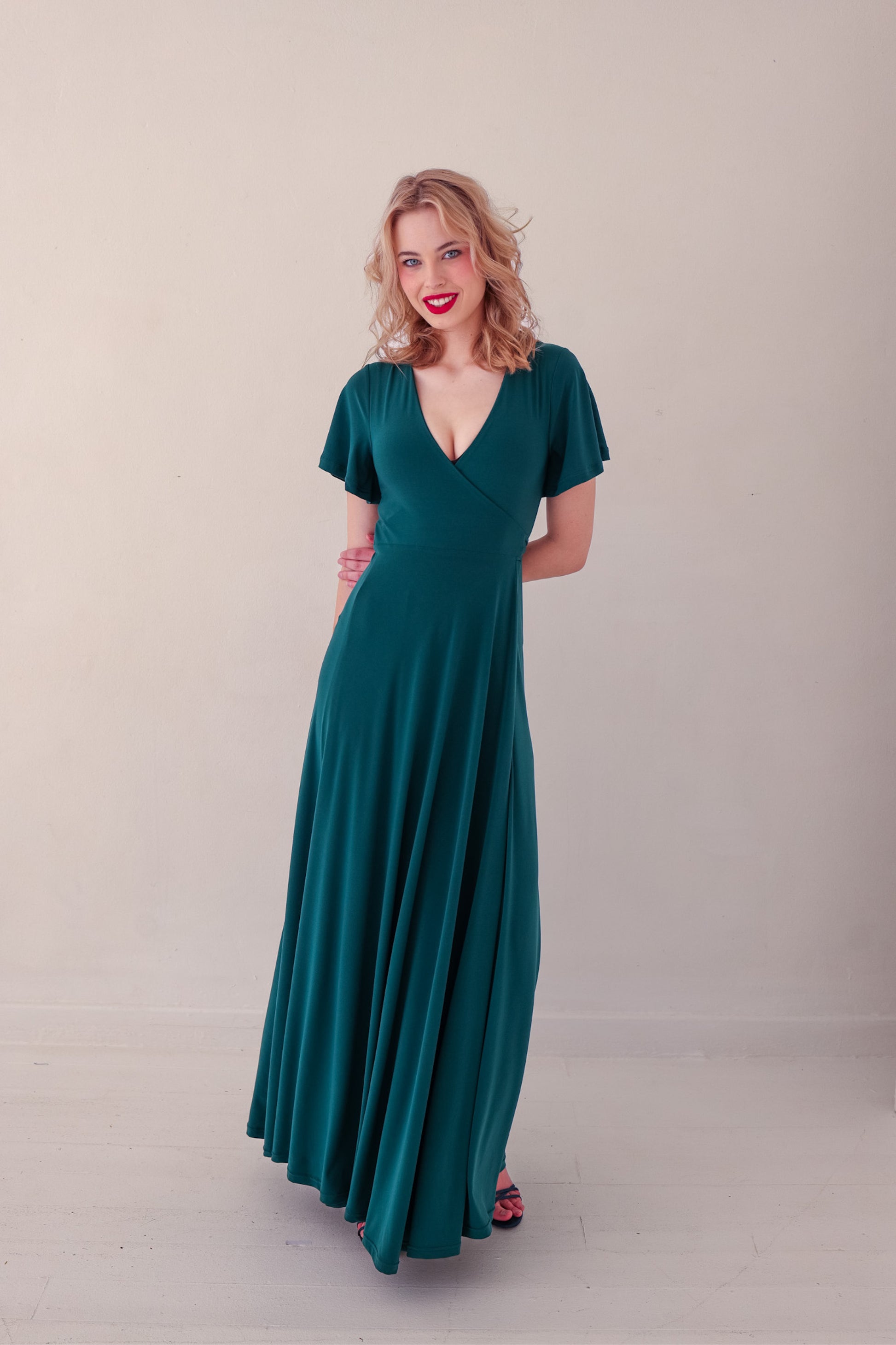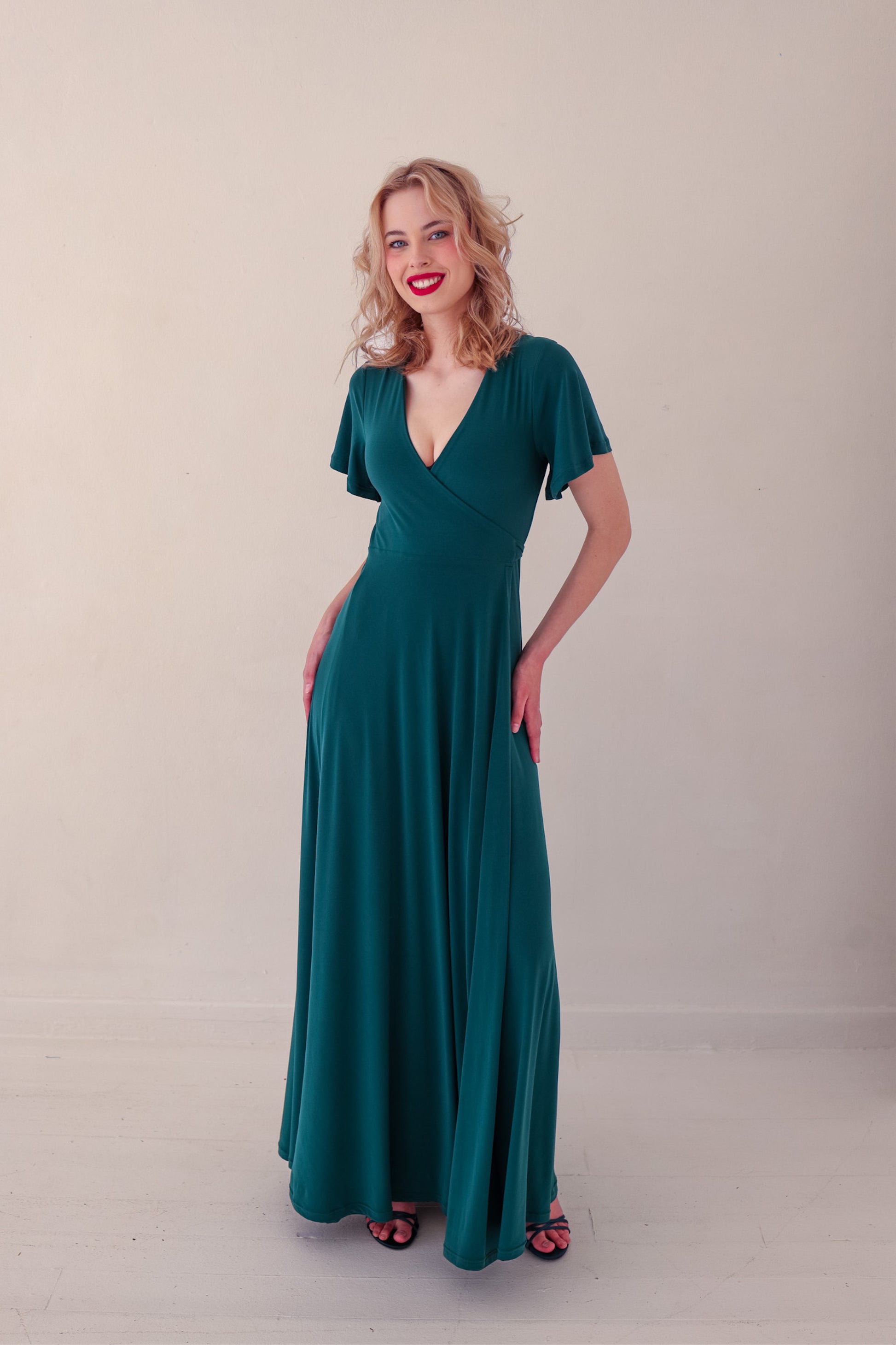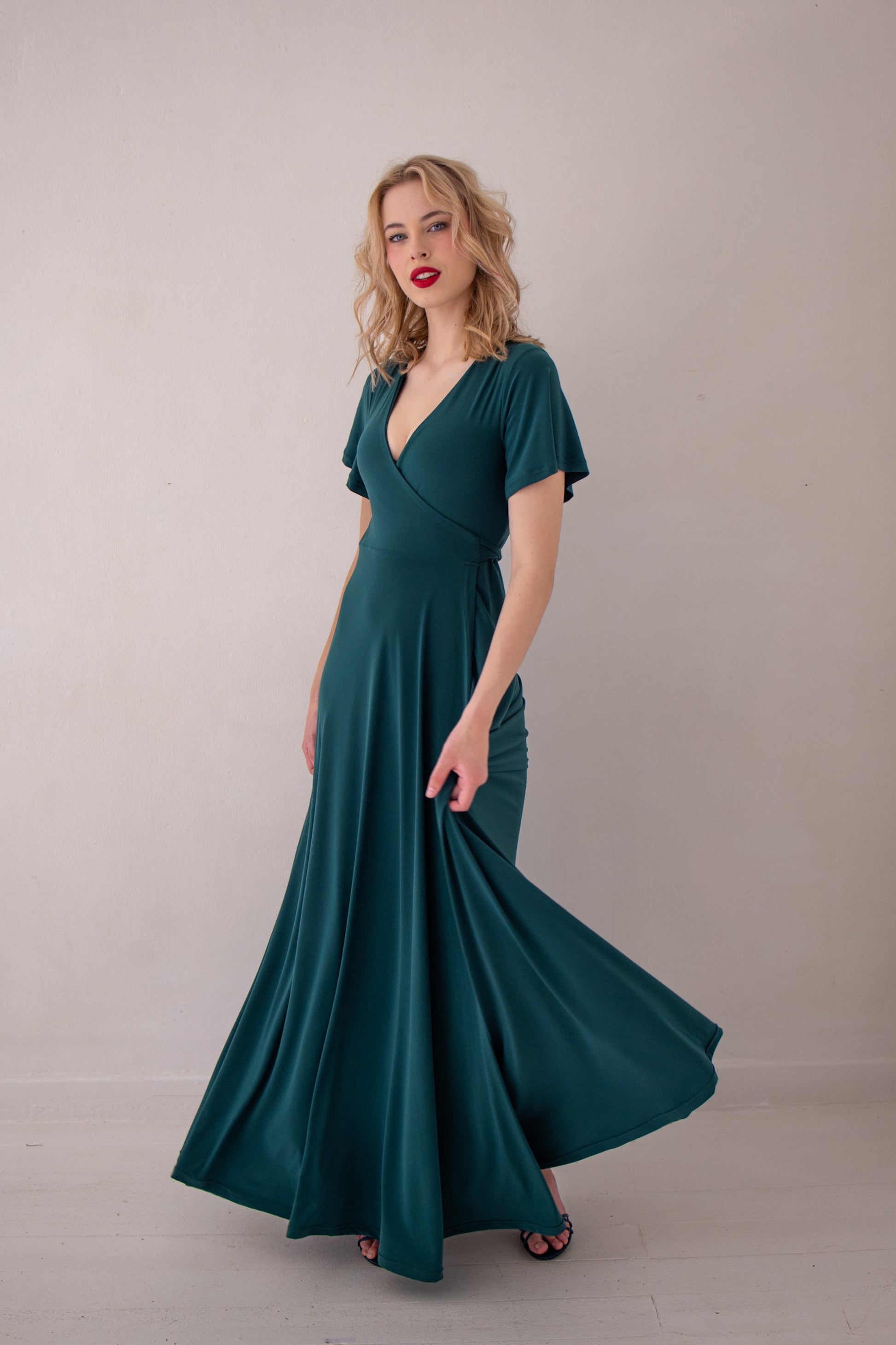Flutter Sleeve Maxi Wrap Dress - Forest Green | More Colour Options