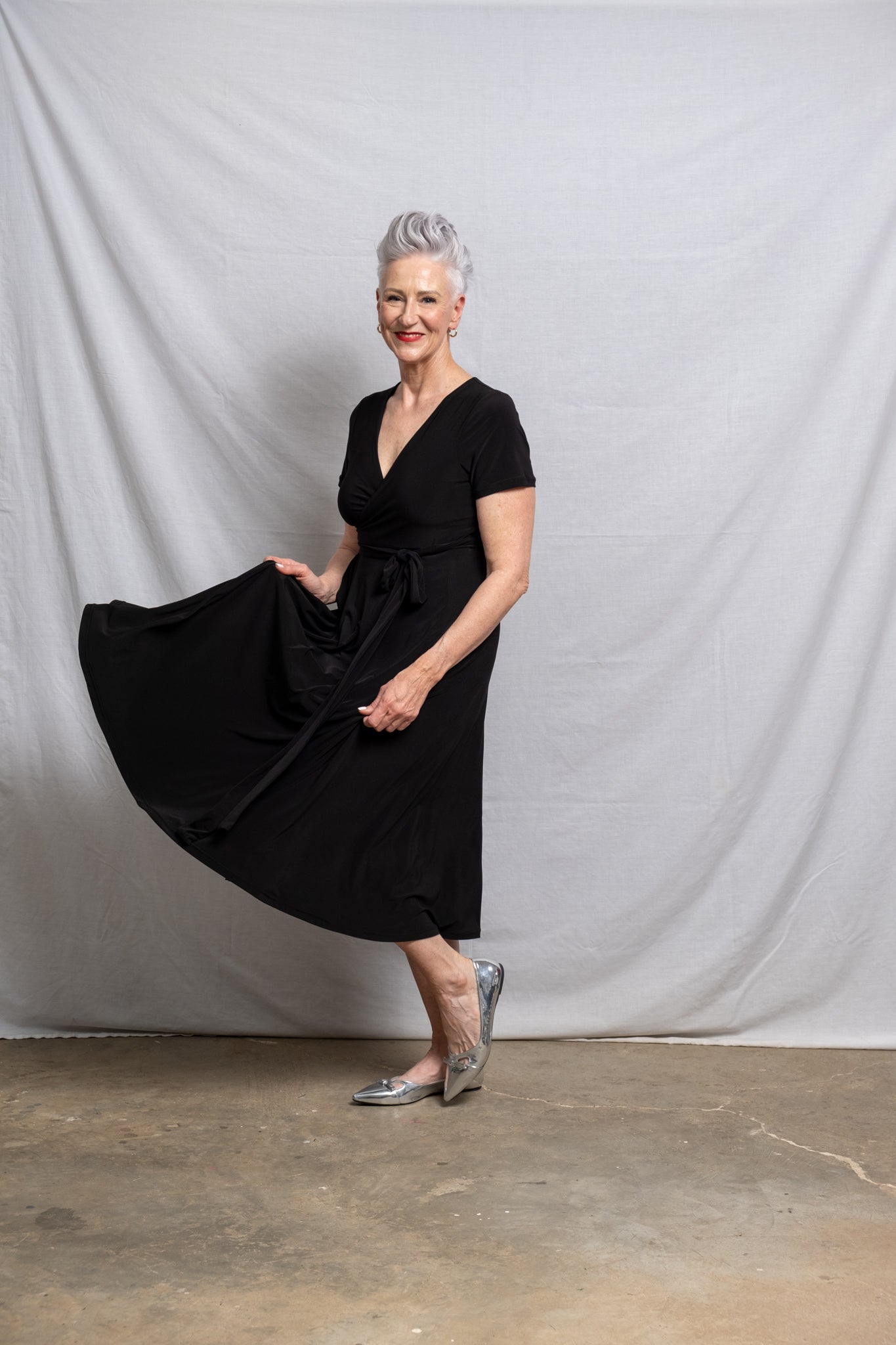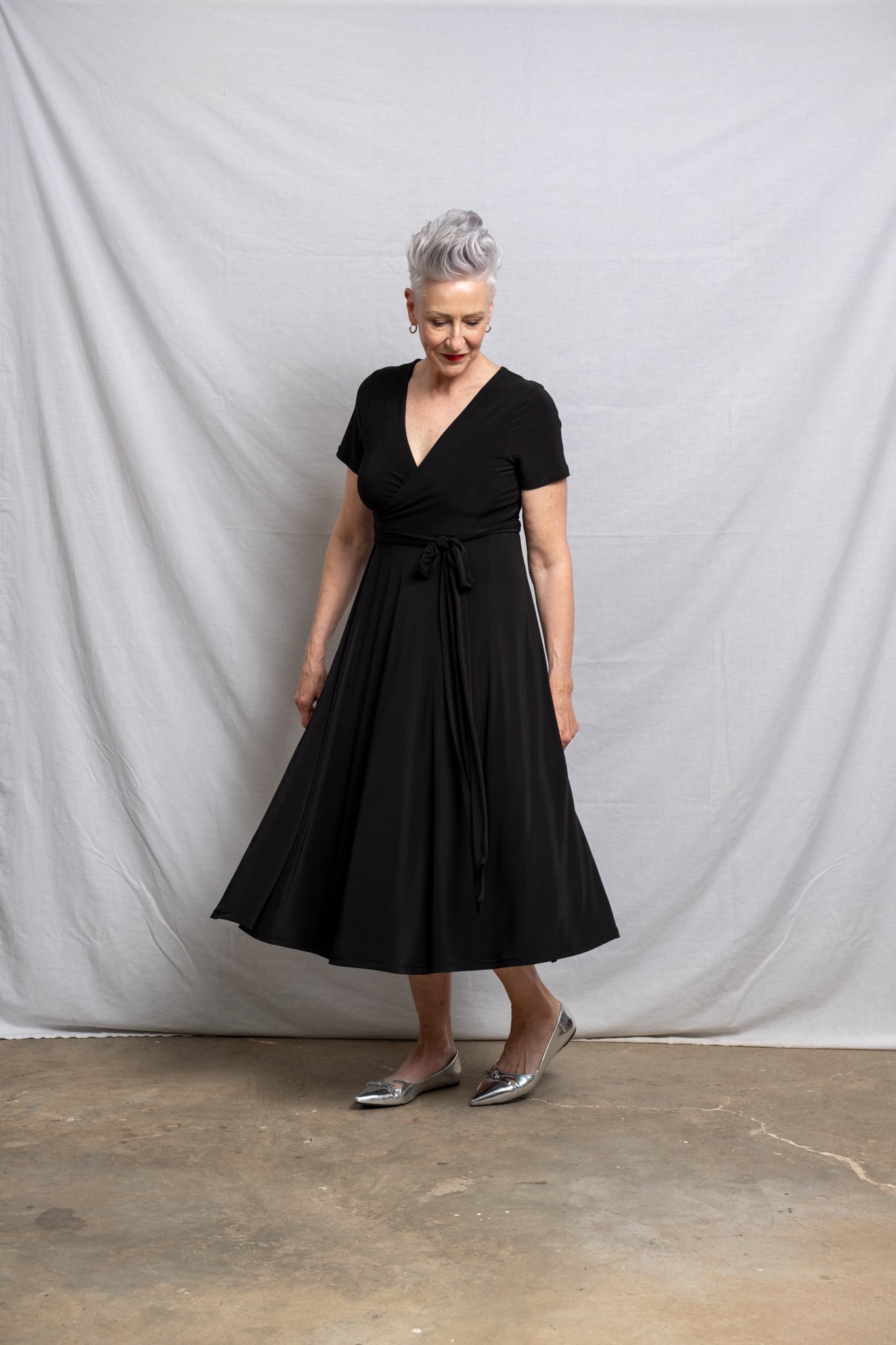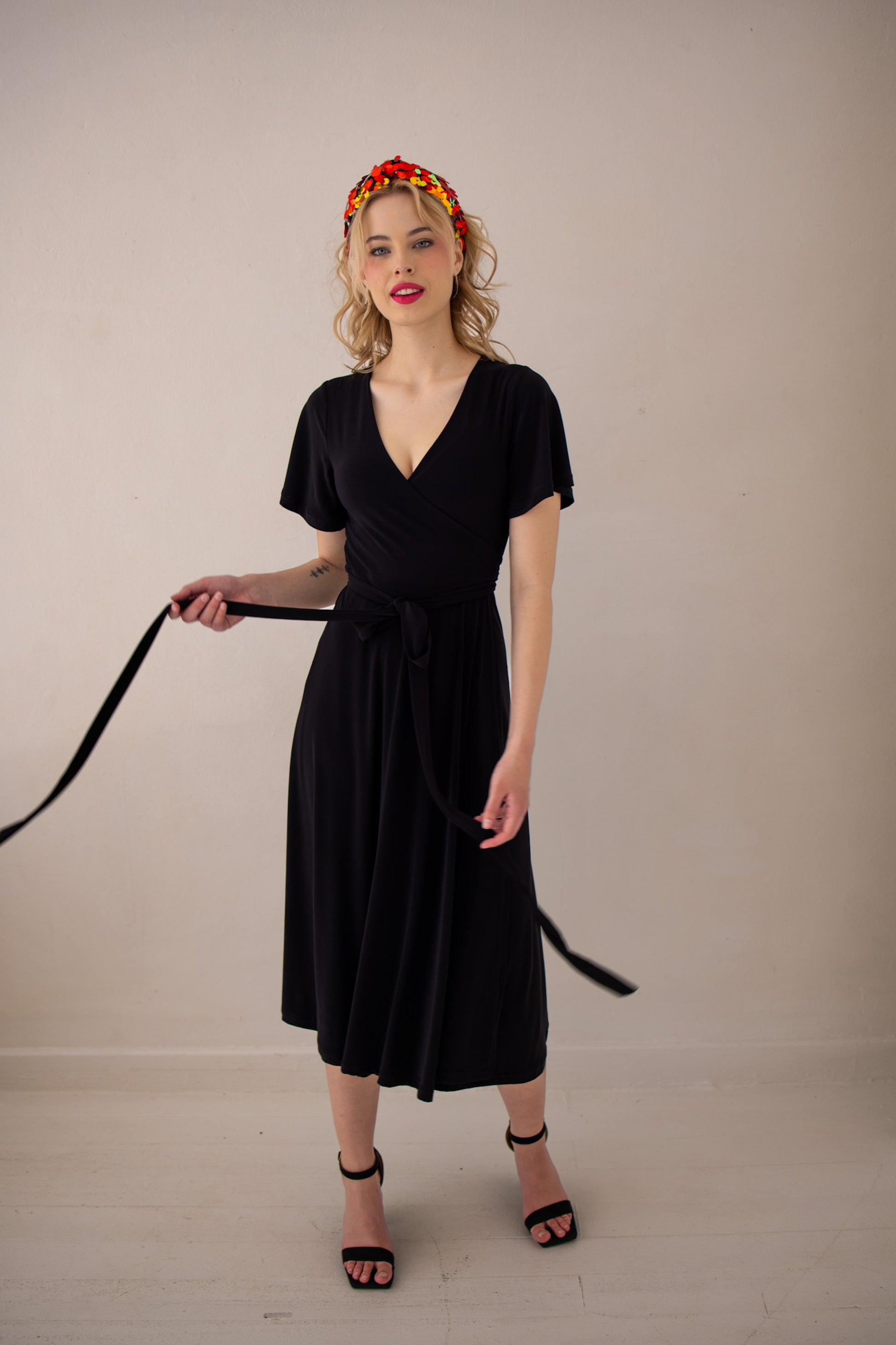 Flutter Sleeve Midi Wrap Dress - Black | More Colour Options