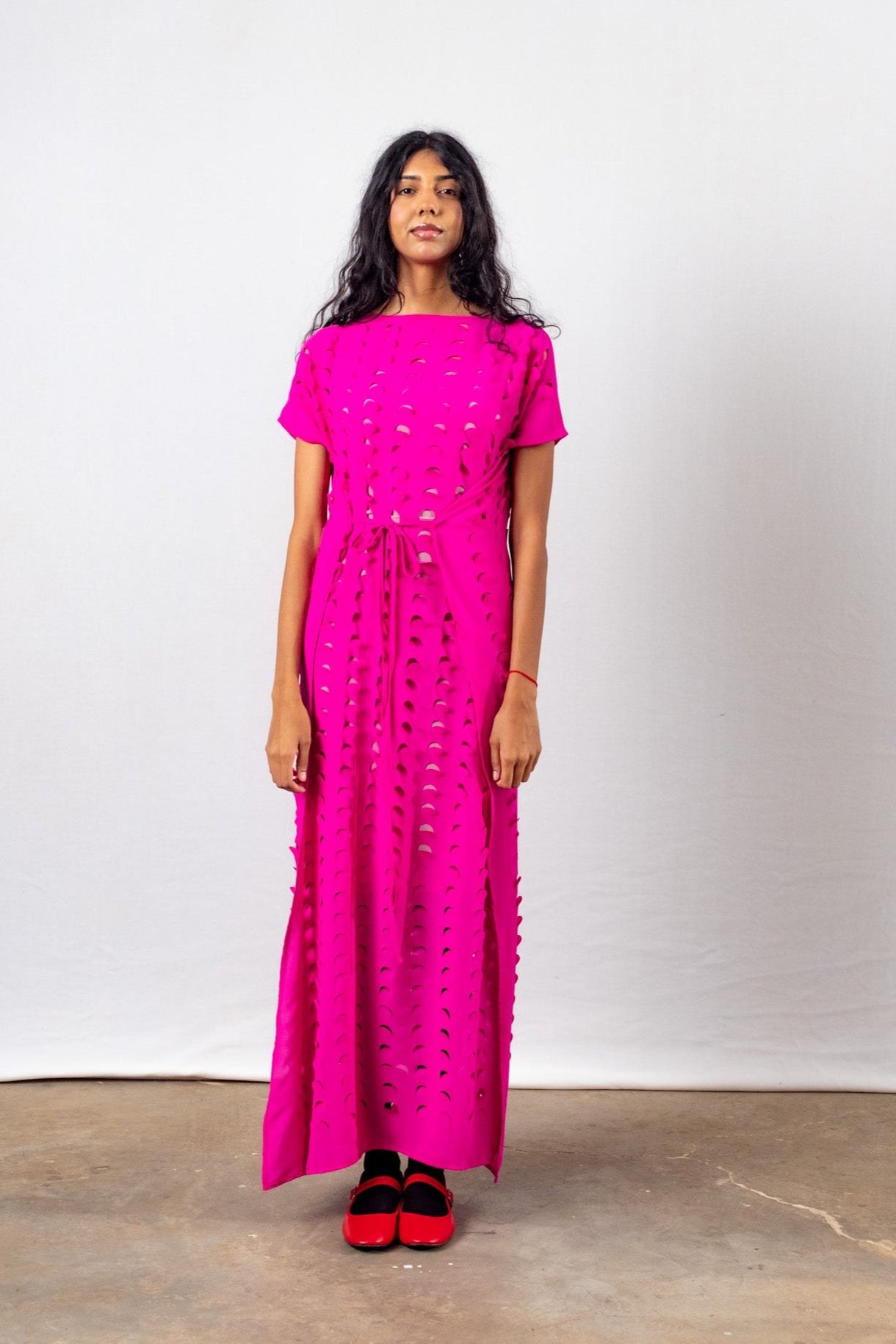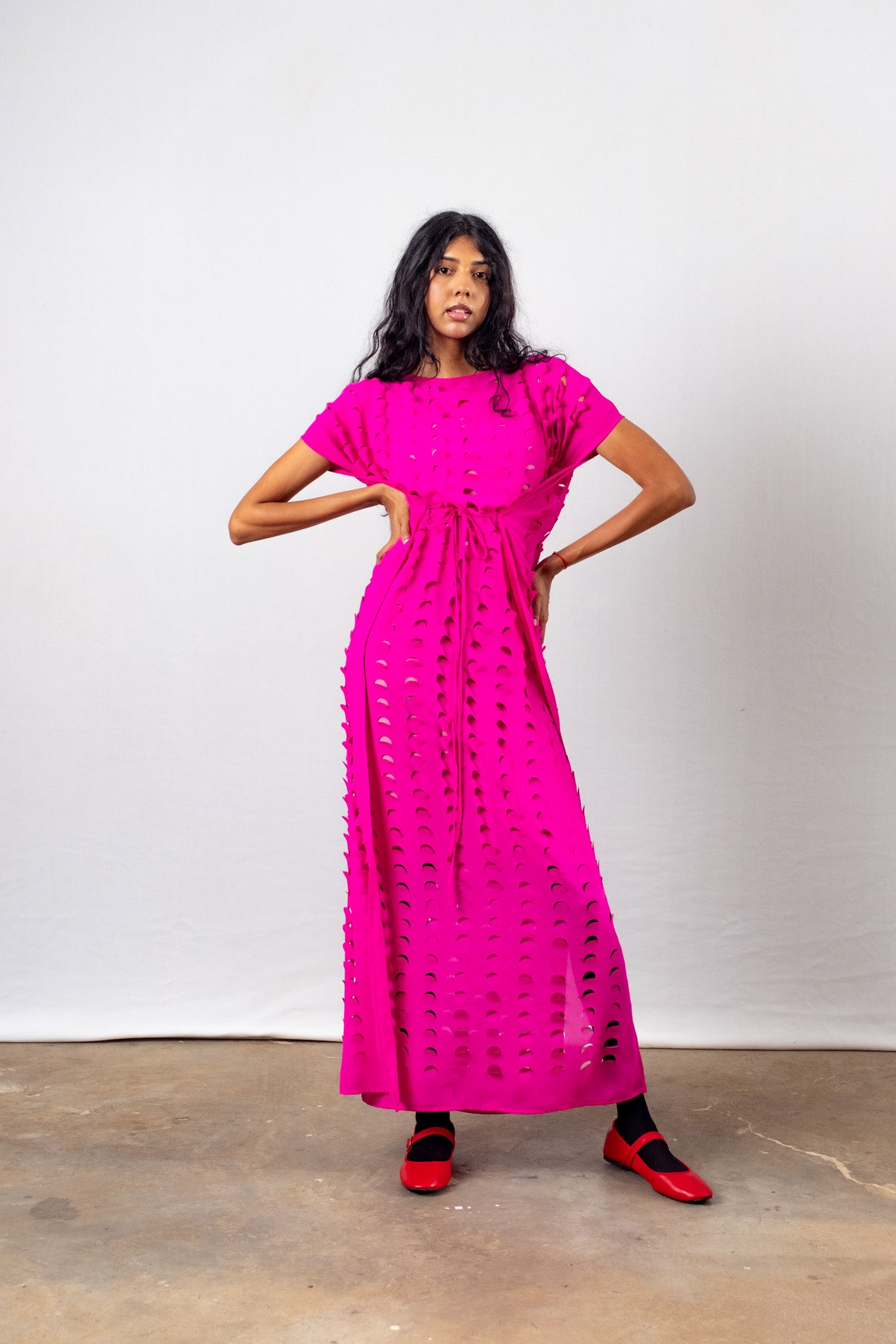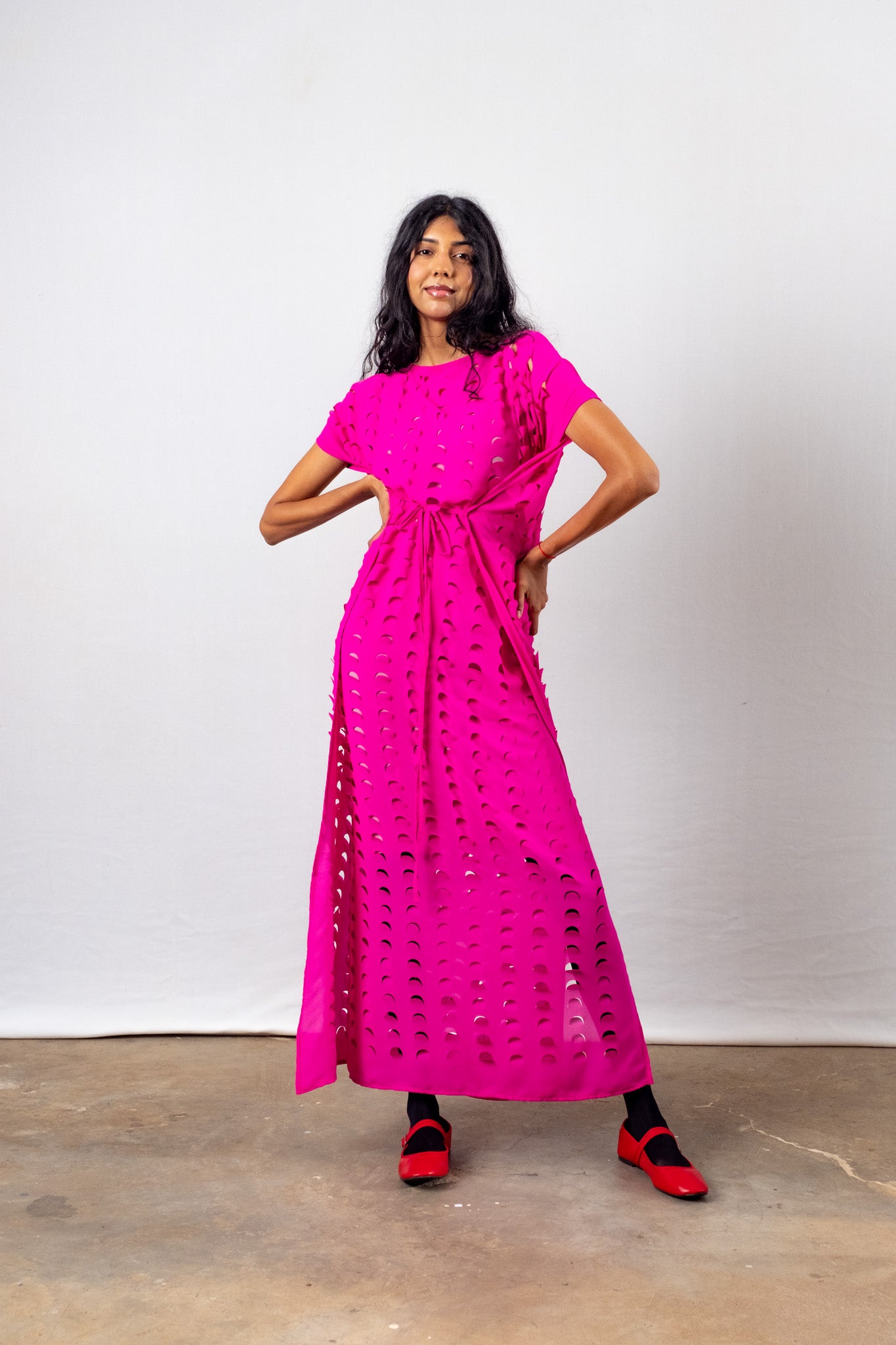 Our signature laser cut pieces was born out of my curiosity to translate braille on to fabric. I was gifted a book by my friend one birthday about WWII. The main character was blind. Her dad used to work in a library. I was fascinated by her and did some research on braille. This led to experimenting with different applications and techniques on fabric. I played around with a laser cut machine and fell in love. The movement of the laser cut pieces in a slight breeze is something magical.