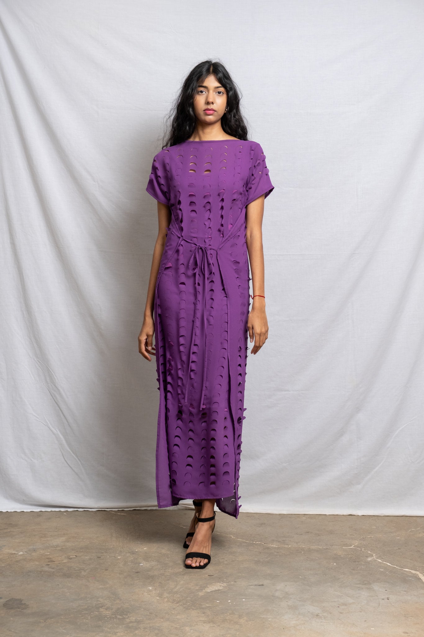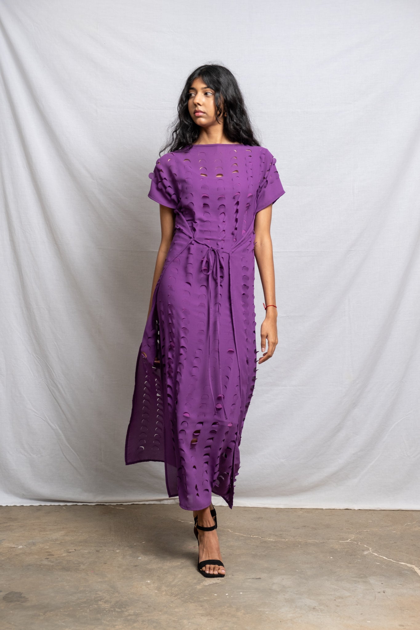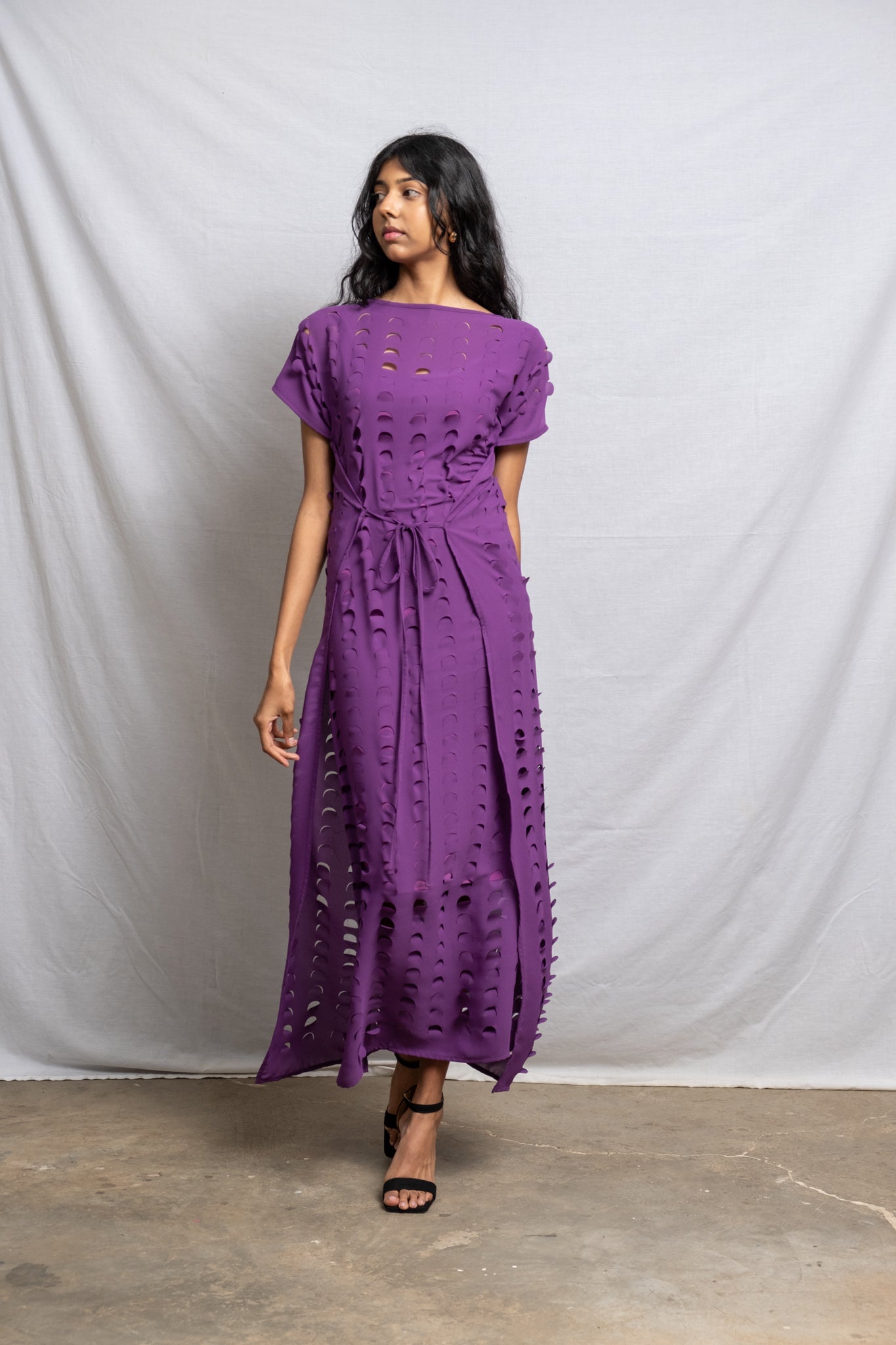 Laser Cut Apron Dress - Plum