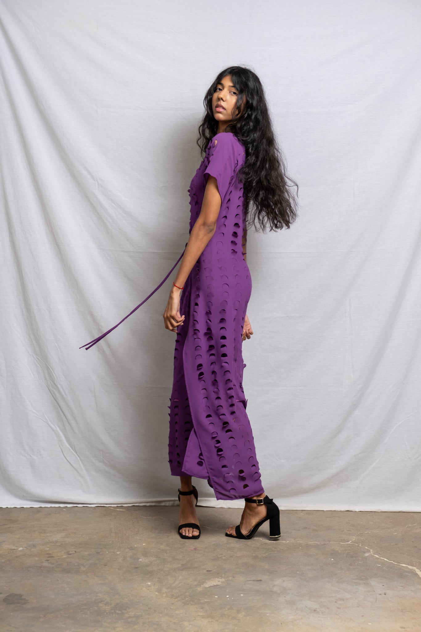 Our signature laser cut pieces was born out of my curiosity to translate braille on to fabric. I was gifted a book by my friend one birthday about WWII. The main character was blind. Her dad used to work in a library. I was fascinated by her and did some research on braille. This led to experimenting with different applications and techniques on fabric. I played around with a laser cut machine and fell in love. The movement of the laser cut pieces in a slight breeze is something magical.