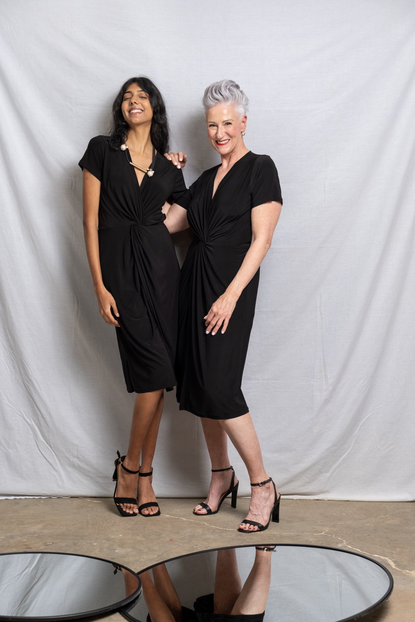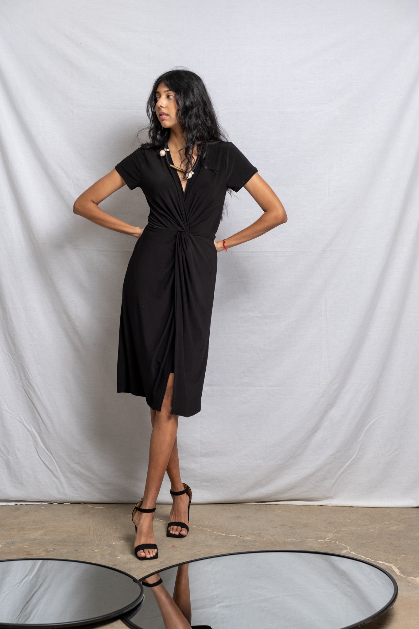 Ultra-flattering and elegant. The gathered twist smoothes the tummy and the V-neck elongates the neck.