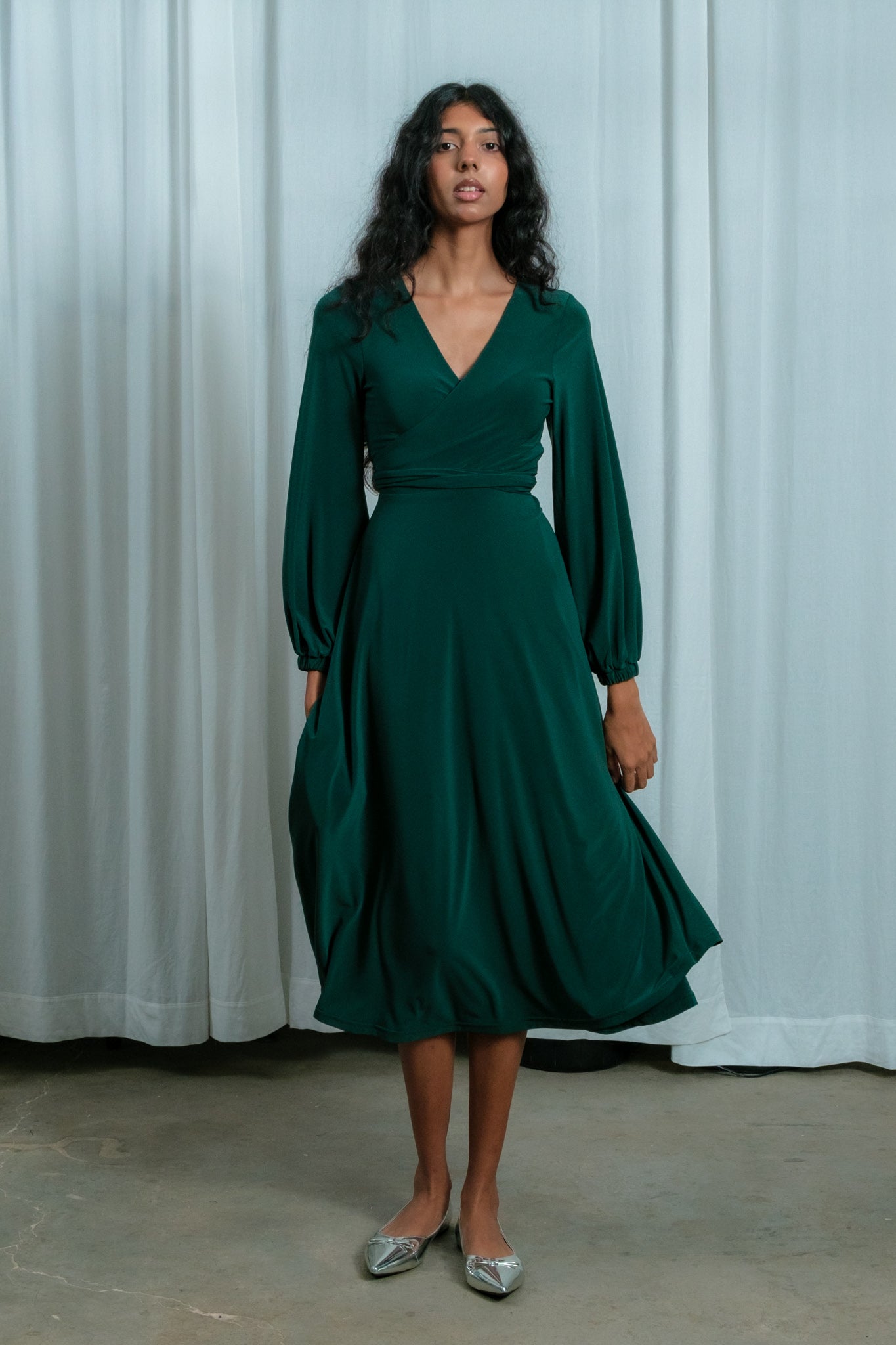 Winter Midi Wrap Dress | Forest Green